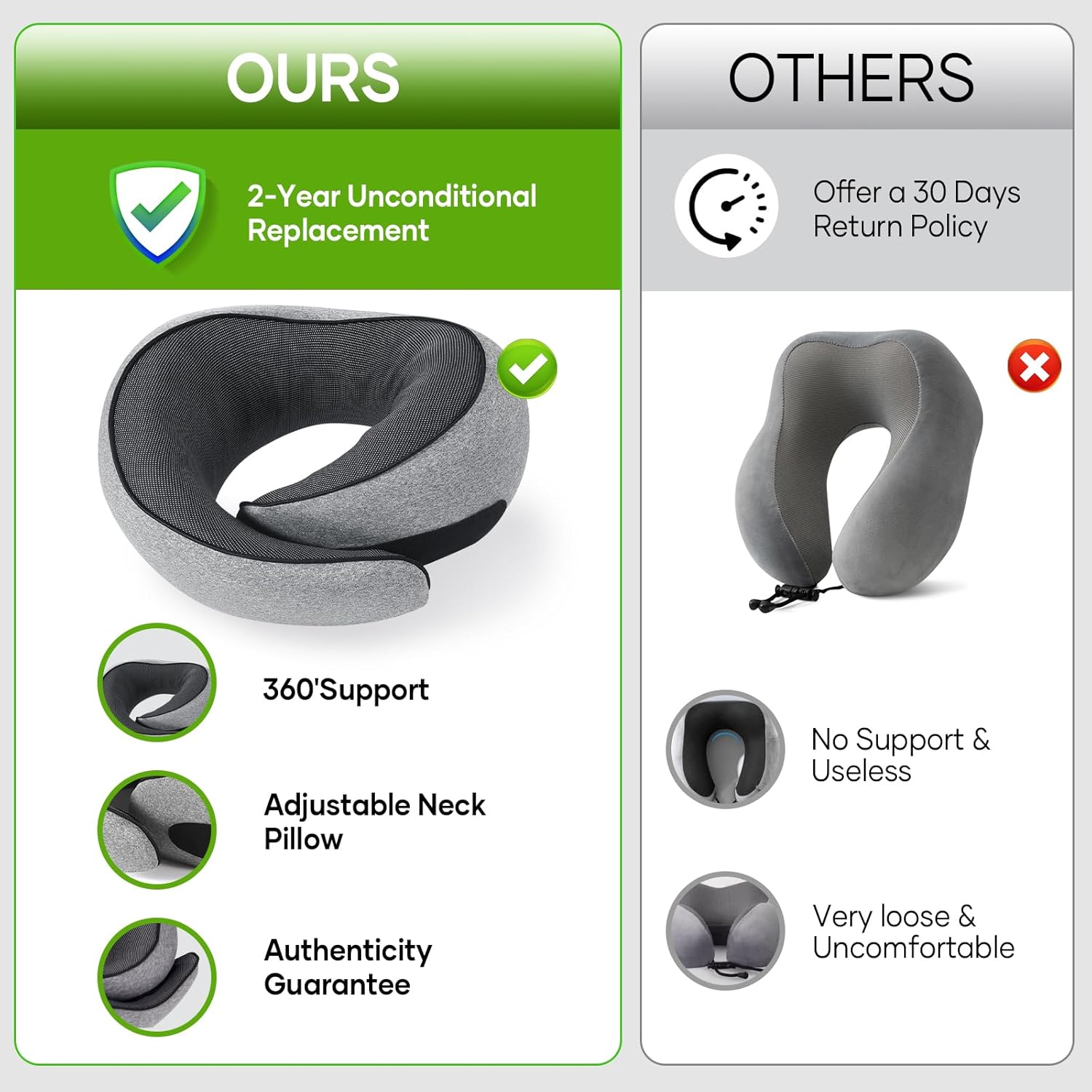 The innovative design of the NOCRLG Travel Pillow offers 360° head support, allowing you to find the perfect position for a peaceful sleep. The pillow’s grey color adds a touch of style to your travel essentials. With a focus on both comfort and breathability, this travel neck pillow is the perfect companion for all your adventures.